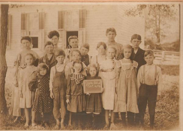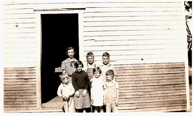 Undated photo; teacher in back row is Lafern Lewellen Greening. Submitted by her son, Ernie Greening